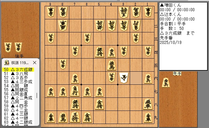 (上画像)決勝戦の一場面、先手がryoくんです。